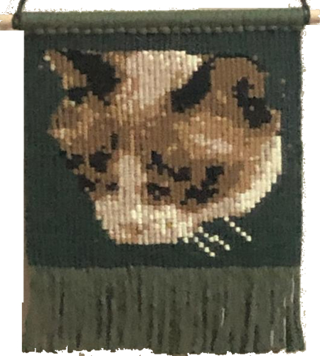 I have been doing tapestry for just over two years and am self-taught, I find it incredibly challenging and am thoroughly enjoying it. I particularly enjoy creating portraits from photographs. Each time I start a new project I try to concentrate on one particular aspect so that I improve step by step. I would also like to eventually create a project whereby the back is almost identical to the front - it is a task, but one which I so enjoy trying to accomplish.