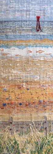 Nature, colour, and daily life inspire me to weave. I enjoy the tactile nature of handling and working with different types of yarn; weaving both freely and in a more conventional way. Being a musician, I like the movement and rhythm of weaving and its onward flow.